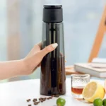 - Insert filter, fill with cold water (ratio 1:12–1:15 coffee:water), then cap.