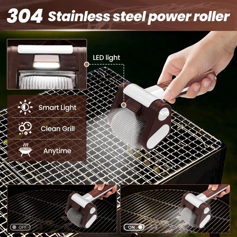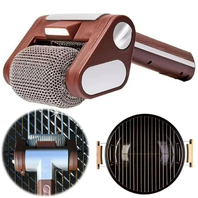 Ditch dangerous wire brushes. A solid stainless-steel roller powers through char without shedding bristles that can end up in food.